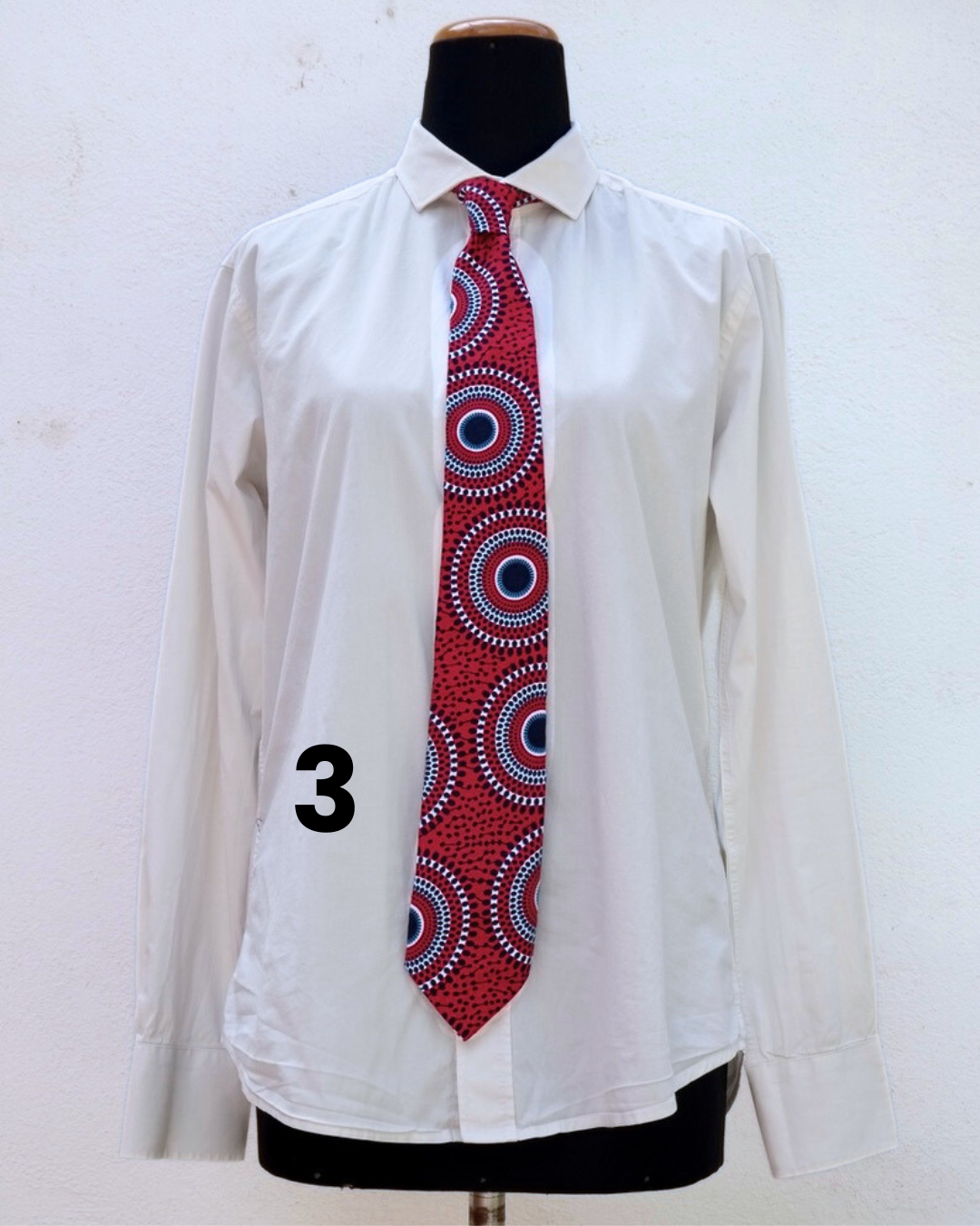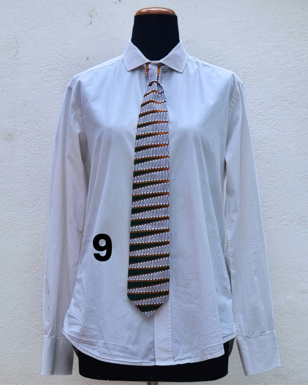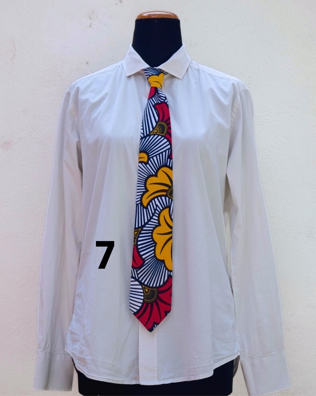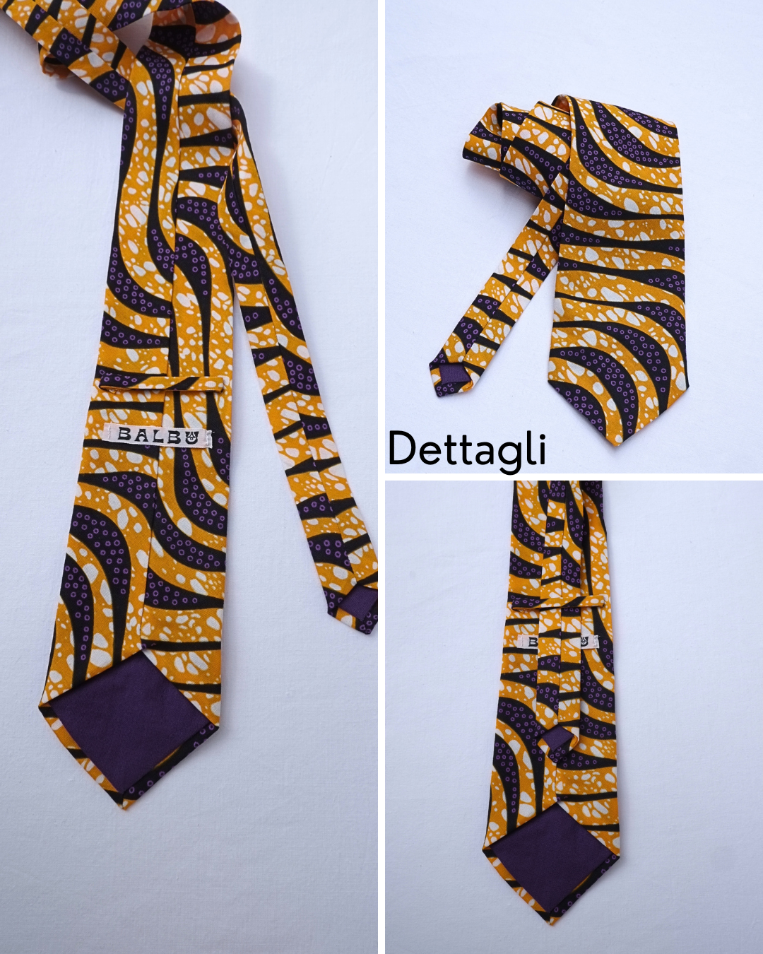 Cravatta di tessuto wax e fodera di cotone di larghezza 8cm.