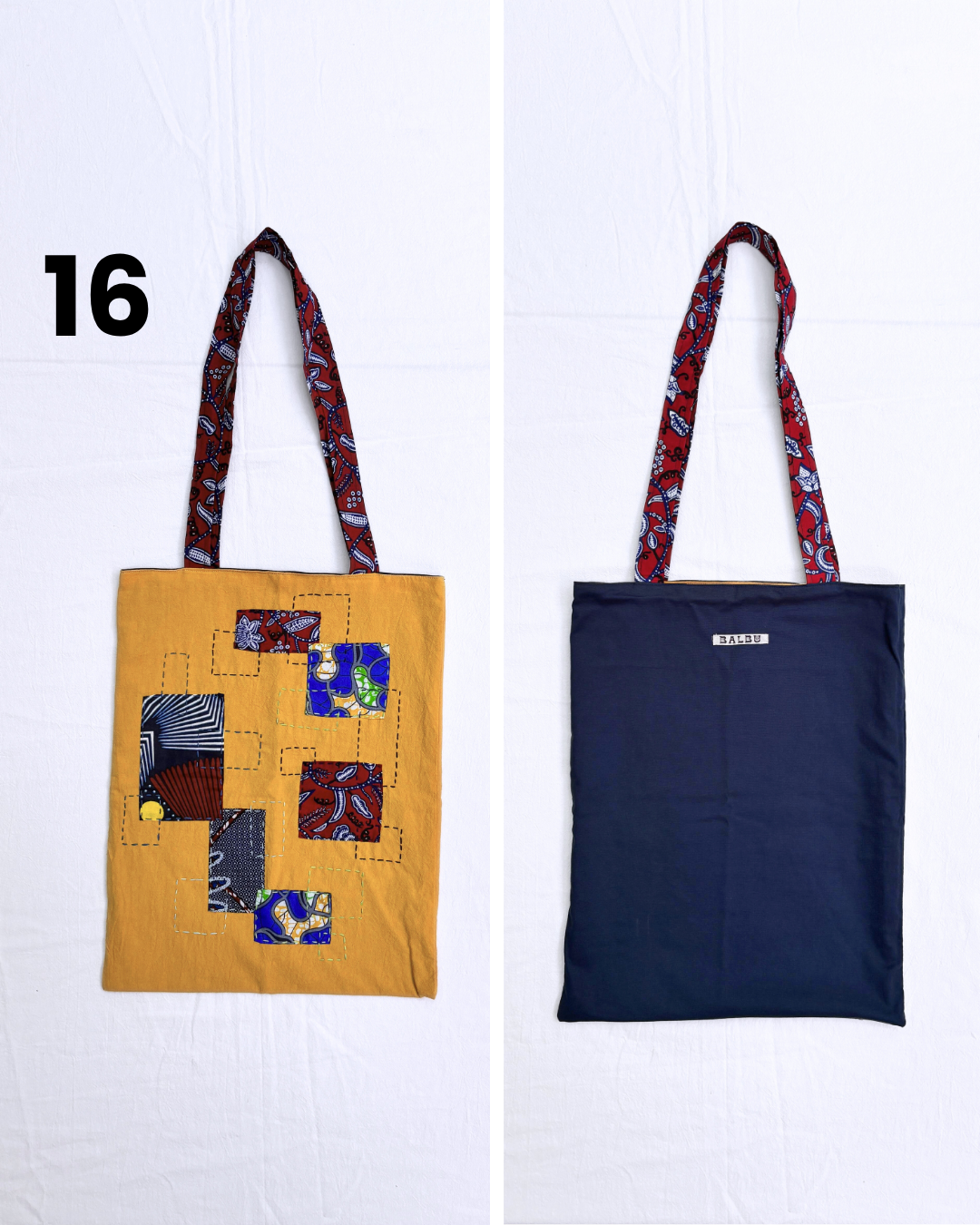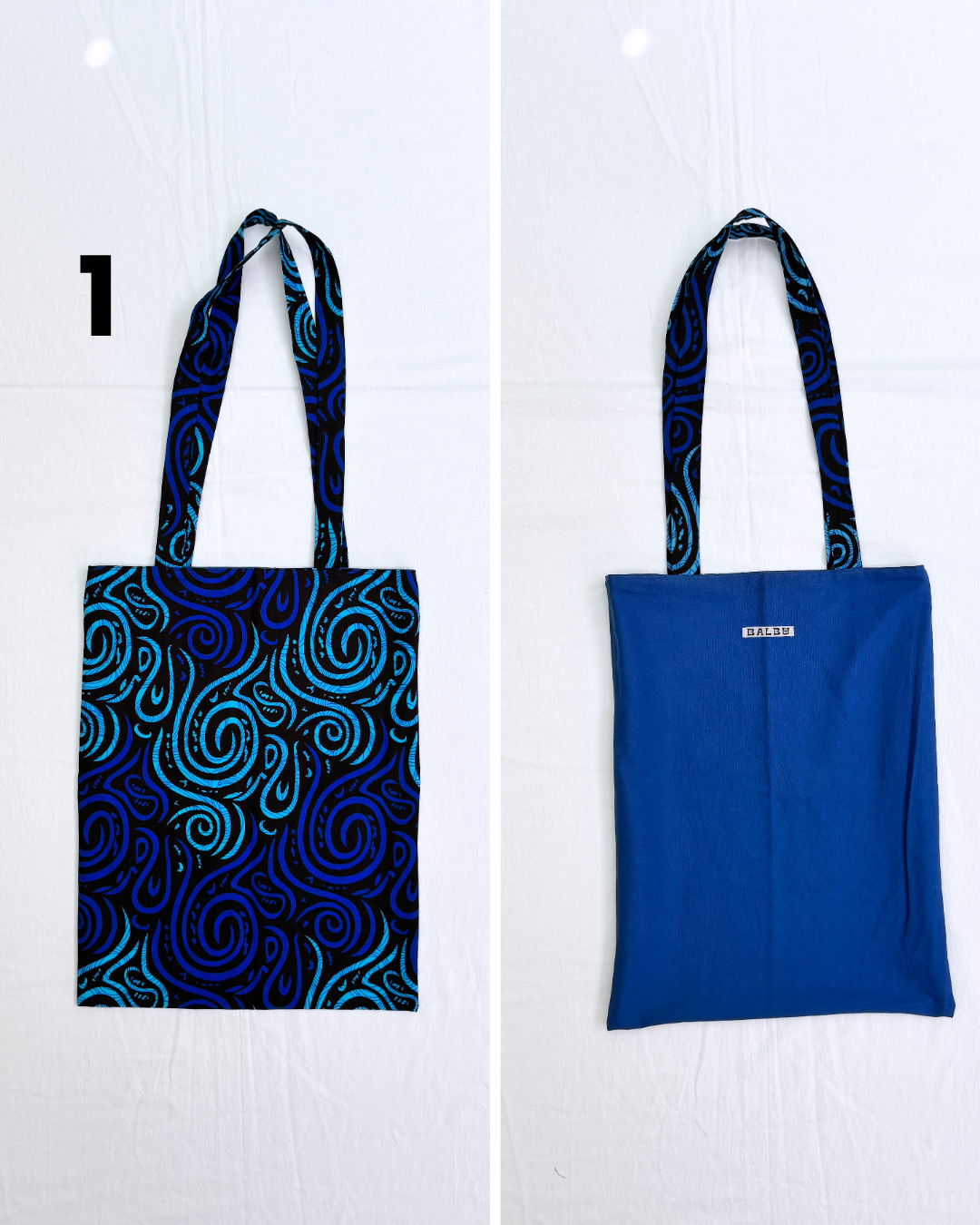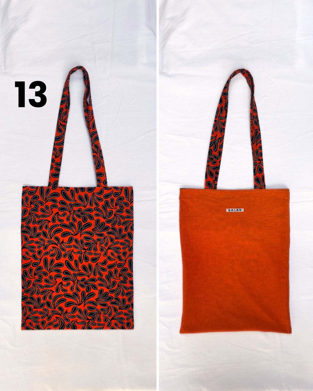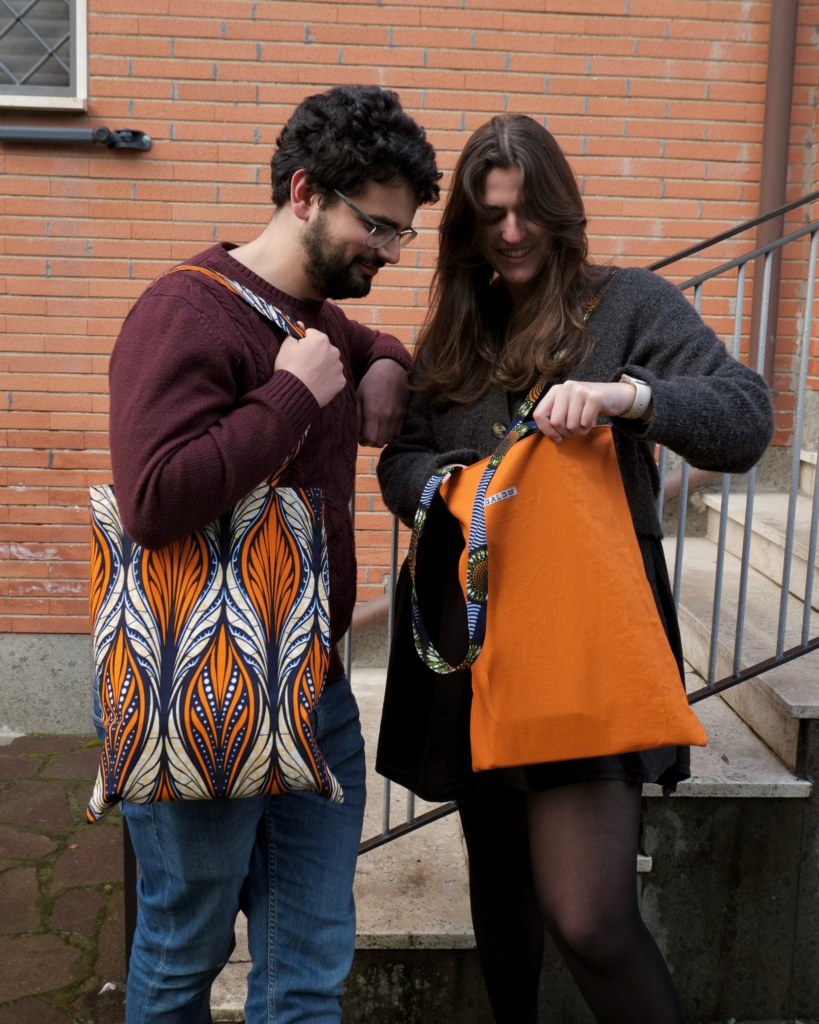 Alcune varianti sono completamente realizzate in tessuto wax, mentre altre utilizzano la tecnica giapponese del sashiko, creando un patchwork di ritagli di tessuto wax su un tessuto di cotone tinta unita, integrato con dei ricami. Il prezzo di quelle realizzate con il sashiko è di 24,00€ poiché la lavorazione è più complessa.
